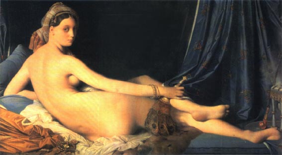 安格尔画的女人体难免令人联想起文艺复兴以来西方的人体画传统,但是有心的读者或许会注意到,画中女子的打扮并不是一个典型的西方人,她包着土耳其头巾,手拿孔雀羽扇,就连衬景的绸缎也散发着异国的光彩。从题目中知道,画的是奥斯曼帝国的宫女。在西方人的脑海里,她们的确具有神秘的吸引力。不过,安格尔笔下女子的意义还不仅如此。创作这幅画的时候,正值法国在对奥斯曼的战斗中失利,法国人从此深深意识到,曾经占有的伊斯兰领土正在不可抗拒地失去。在这样的情况下观看只有在私密空间才能看到的东方女子的形象就别有一番含义了,它潜藏着一种心理上的欲望和征服。安格尔毫不掩饰,甚至极力夸张女人体感官上的魅力,同时又极其冷静、富有克制力地将它表现出来,恰好为观众的视觉与欲望之间提供了适当的安置。