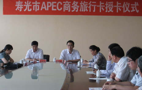 本报讯 5月10上午,APEC商务旅行卡授卡仪式在潍坊寿光举行。这是潍坊市外事与侨务办公室根据上级有关政策,为加快“四个潍坊”建设,推动全市企业拓展海外业务,鼓励和支持符合条件的外向型企业申办APEC商务旅行卡,让更多的企业受益。。这次APEC授卡仪式为晨鸣集团、鲁丽集团、山东万事达机械三家企业12人发放了已获外交部批准的APEC商务旅行卡。