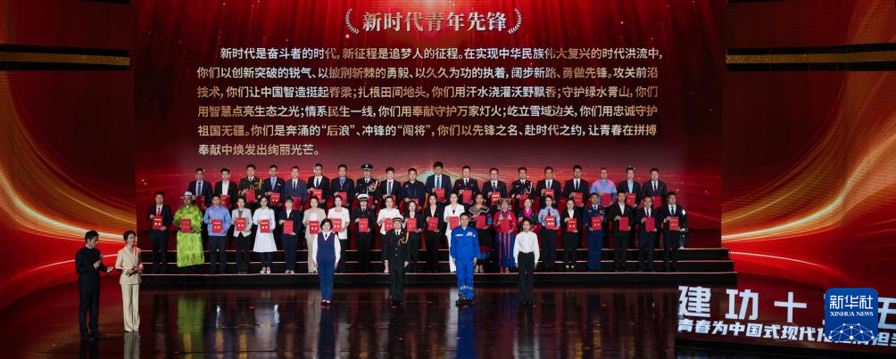 4月27日,2026年度中国青年五四奖章获奖集体代表在颁奖活动上合影。新华社记者 才扬 摄