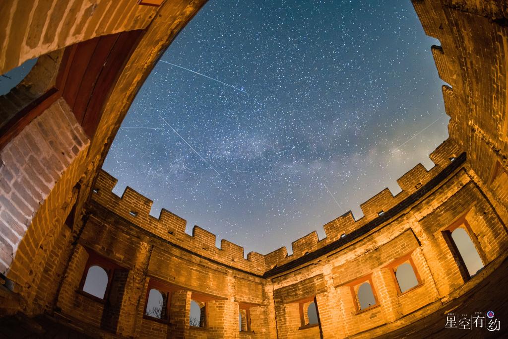 2026年4月15日,在河北承德金山岭长城拍摄的璀璨星空。(邢广利 摄)