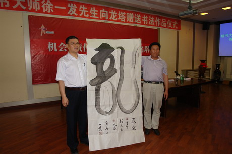 由中国书画家协会副主席、著名书法家、榜书大师徐一发创作的六尺巨“龙”字幅,其赠送仪式于二0一0年六月三日在黑龙江省省会哈尔滨市龙塔会议大厅隆重举行。