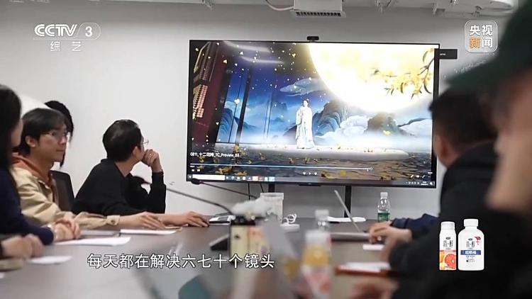 总台技术局高级工程师 刘璐宁:它最有难度的地方是我们要基于1号厅实景的物理结构,真实地去还原一些空间元素和位置,同时AI还要去学习和模仿。我们现场机位真实的运镜再结合着大模型生成的这些精美视效,才能够把它们合到一起。