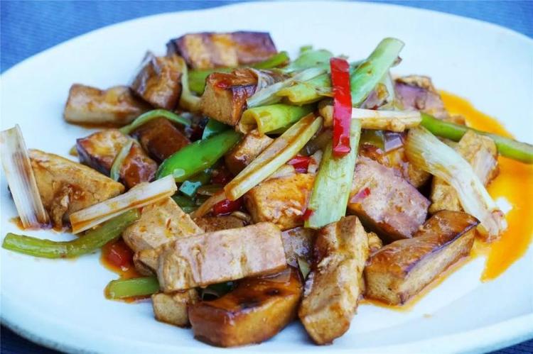 在孔府菜系中,豆腐也占有很重要的一方天地。有着传奇历史的孔府熏豆腐,是曲阜特色美食之一。浅咖色的外表,让这道熏豆腐在北豆腐中独树一帜。