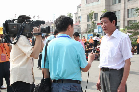 新矿集团党委常委、工会主席曹民清在西部行启动仪式上接受记者采访