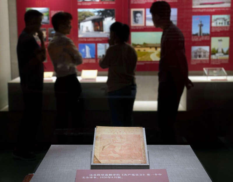 2023年7月25日,在中共一大纪念馆内展出的陈望道译《共产党宣言》首个中文全译本。新华社记者 刘颖 摄
