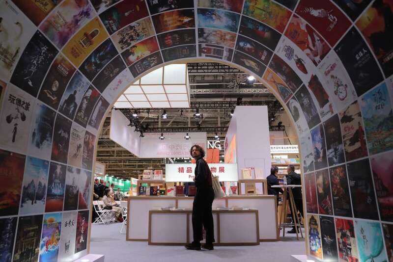 2025年10月15日,一名读者在德国法兰克福书展中国联合展台参观。新华社记者 杜哲宇 摄