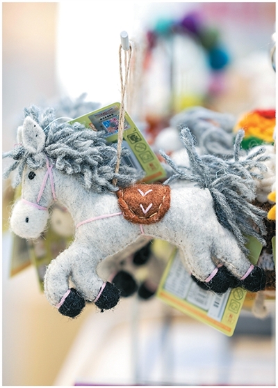 内蒙古博物院一家文创店内的马造型挂件。 |