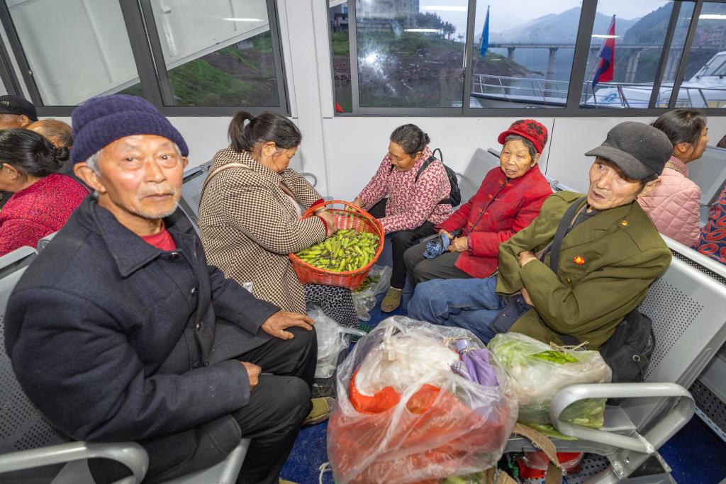 “十多年来,我们一直坐船卖菜,因为票价便宜,背着背篓方便,还有像家人一样的船长船娘。坐上新船,我们打心眼里高兴。”菜农秦大权说。