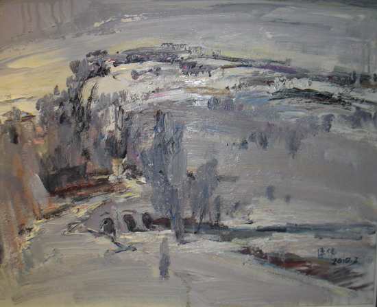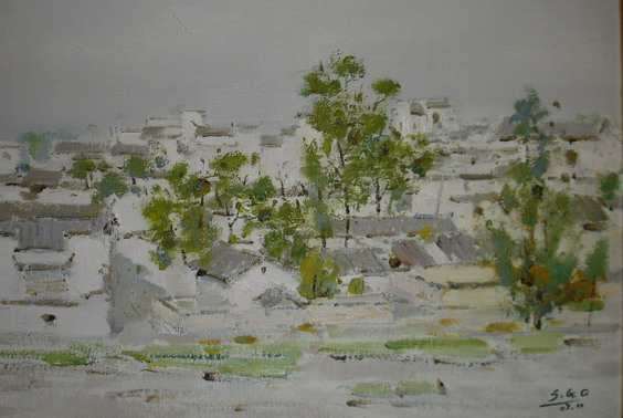 此次画展虽然十位艺术家作品风格迥异,但从审美的趣味和表达形式看,他们在内在精神上有很多相同之处,给人最突出的印象是普遍存有一种东方情怀,作品追求东方绘画意境在油画表现上的体现,这与吴冠中老师的作品其理相同,当然这也是因为他们在大学时受到吴冠中老师的指导有关。1980年吴冠中老师在山东写生时,应邀专门到曲师美术系举办了绘画讲座,其中西结合的绘画艺术表现观念和作品让刚从文革中走来的师生耳目一新,这次讲座对曲师恢复高考后的这批学生产生了深远持久的影响,从这次画展的作品中可以明显看出吴冠中老师所提倡的中西结合的艺术探索痕迹。