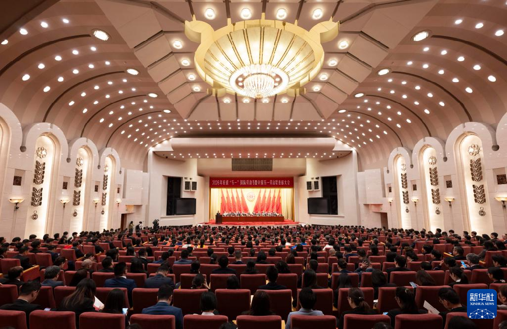 这是4月28日在北京人民大会堂拍摄的2026年庆祝“五一”国际劳动节暨全国五一劳动奖表彰大会。 新华社记者 才扬 摄 新华社北京4月28日电(记者樊曦、才扬)28日,中华全国总工会召开庆祝“五一”国际劳动节暨全国五一劳动奖表彰大会,发布关于表彰2026年全国五一劳动奖的决定,共表彰全国五一劳动奖3024个。 决定指出,2025年是“十四五”规划收官之年,全国广大职工深入学习习近平总书记在庆祝中华全国总工会成立100周年暨全国劳动模范和先进工作者表彰大会上的重要讲话精神,与党同心、跟党奋斗,为推进中国式现代化作出突出贡献,涌现出一大批先进集体和个人。他们在推动高质量发展中建功立业,在服务重大战略、重大工程、重大项目、重点产业中勇挑重担,在深化产业工人队伍建设改革中锐意进取,充分发挥了主力军作用。 4月28日,荣获全国五一劳动奖状的部分集体代表在大会上合影。 新华社记者 才扬 摄 为表彰激励先进典型,凝聚起团结奋进的强大力量,中华全国总工会决定,授予北京北一机床有限责任公司等379个单位全国五一劳动奖状,授予吴勇等1462名职工全国五一劳动奖章,授予北京北斗星通导航技术股份有限公司地基云端算法团队等1183个集体全国工人先锋号,对受表彰的先进女职工个人和集体同时授予全国五一巾帼标兵和全国五一巾帼标兵岗。 中华全国总工会号召,全国广大职工要更加紧密地团结在以习近平同志为核心的党中央周围,深入学习贯彻习近平新时代中国特色社会主义思想,紧紧围绕党的中心任务,大力弘扬劳模精神、劳动精神、工匠精神,以受表彰的先进典型为榜样,立足岗位、创新创造、奋发进取、拼搏奉献,奋力实现“十五五”良好开局,在以中国式现代化全面推进强国建设、民族复兴伟业中作出新的更大贡献。
