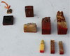 秦以前任何人的印都称“尒”,由于读音相同都念“洗”。秦始皇统一天下后又得“何氏之壁"封为传国“玉玺”,法定只有皇帝的印才能称“玺”,一般人只能称印了。自秦初“玺”与“印”就有了区别。到了唐代女皇武则天认为“玺”音近似“死”音,甚感不美,在公元<649>年改“玺”为“宝”,至宋元皇帝印“玺”与“宝”并用,但普通人的仍然称“印”。汉代凡官吏俸禄在二千石以上均官的印不叫“印"而叫“章”字,因为这些官可直接向竽帝奏事,他们的印用于奏章故称为“章”,以示身份与小官吏不同。汉代印上多用五字如“丞相之印章”,这是迷信思想的作怪,也是受阴阳五行的影响之故,“阴阳五行”早在春秋就有了。“天人相与”是从战国时候提出来的,其代表人物是邹衍,有“五德终始”一说。他把人与天,人与神鬼沟通起来,把历史的演变,帝王的更替,朝.代的兴衰,都看作是天命、天意,都是上天安排的。天有黄、青、白、赤、黑无色,每一朝都受德的支配,每一“德”又有盛衰。“五行”既“金、木、水、火、土”“无德”既金德、木德、水德、土德。因此各朝代就成分了:虞代为之土德,其色尚黄,夏代为之火德,其色尚赤,到汉代五德轮换变化依次序,汉代当是土德,其颜色尚黄了,因此帝王就崇尚黄色,汉王为土德王,土数为五,故印文用五字,遇见不足五字的,可以加之来补充,这是一般的情况,在特殊的情况下也有不是五字的,如在.河南咸阳长陵出土的“皇后之玺”就不是五字。隋、唐、宋、元时将“印”也称作“记”或将“印"称为“朱印"如“大毛村记”“右策宁州留后朱记”“元从都押衙记”等。明、清时的官印称之“关防”私印称“手戳”战国时期私印称“私玺”,秦至清也通称叫“印”。自宋、元到清朝又兴起一种叫法称作“押"或叫“押字”其用意叫“化押”也叫“画押”因为一般人都识字比较容易作弊,而画押只有自己知道是什么笔画别人难于效仿,其目的就是防人作弊,这是印章的演变的大概情况。明、清时文化名流各分派系,在印章上才出现了古怪离奇的字样多不被人变认,以示书画确为自己所作。他们刻印用料也是五花八门有铜印、玉印、金印、银印、琥珀、玛瑙印、水晶印、骨印、牙印、泥印、石印、木印、陶瓷印、铸印等据印主的身份选择用料,其目的也防他人作伪,同时也是显示印主的身份和地位。